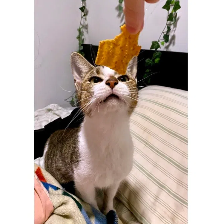 Penelope may be cautious at first, but beneath her shyness is an affectionate cat who loves neck rubs and will let you know it with her sweet, vocal personality. She is learning how to play and trust again, discovering little moments of joy as she grows more comfortable.