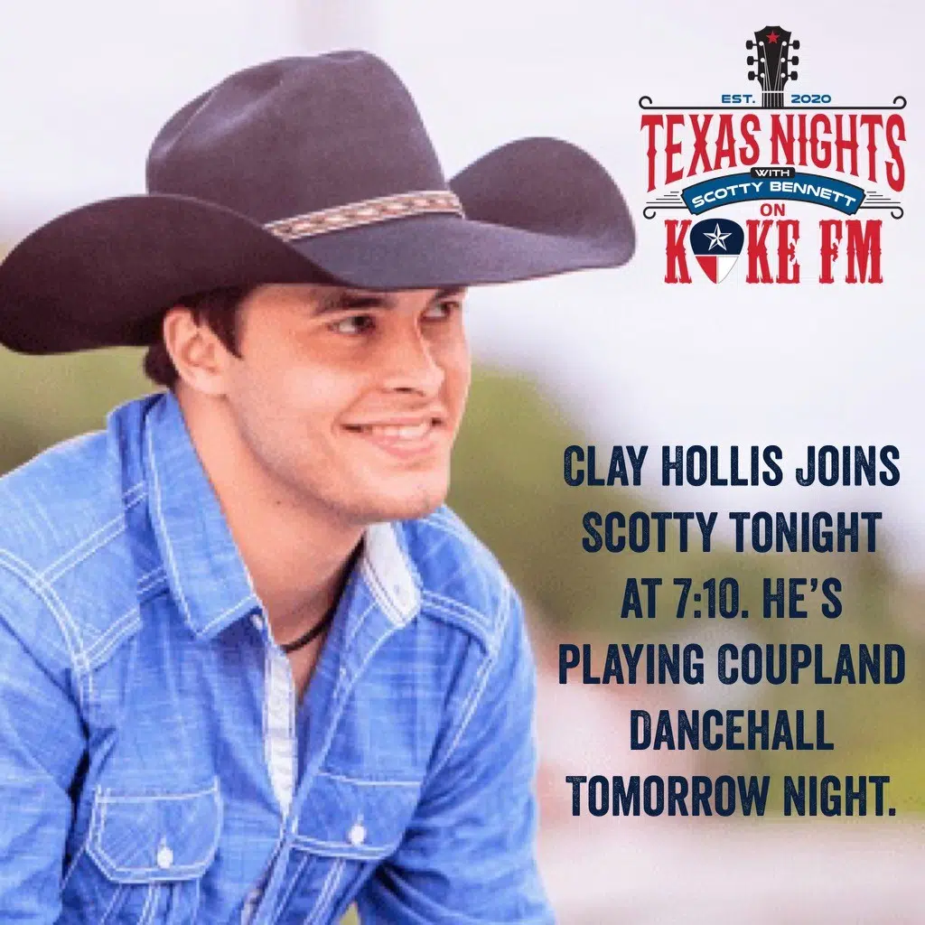 Clay Hollis called in to Texas Nights Friday night to catch up with Scotty about new music, Key West and his show Saturday night at the Coupland Dancehall! Hear the full interview below!