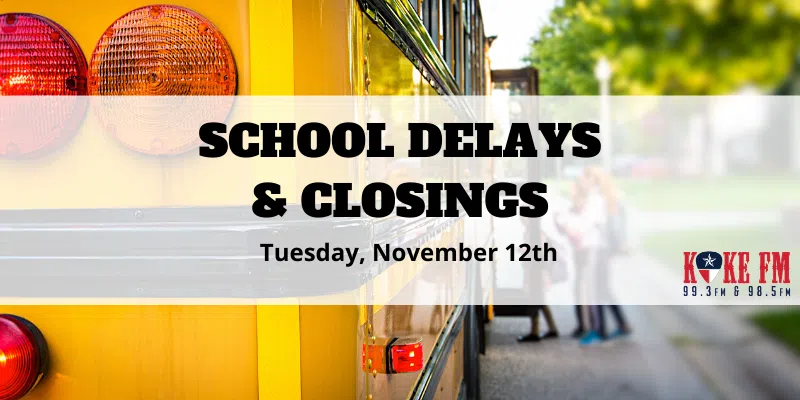 LIST OF SCHOOL DELAYS & CLOSINGS: Tuesday, November 12th