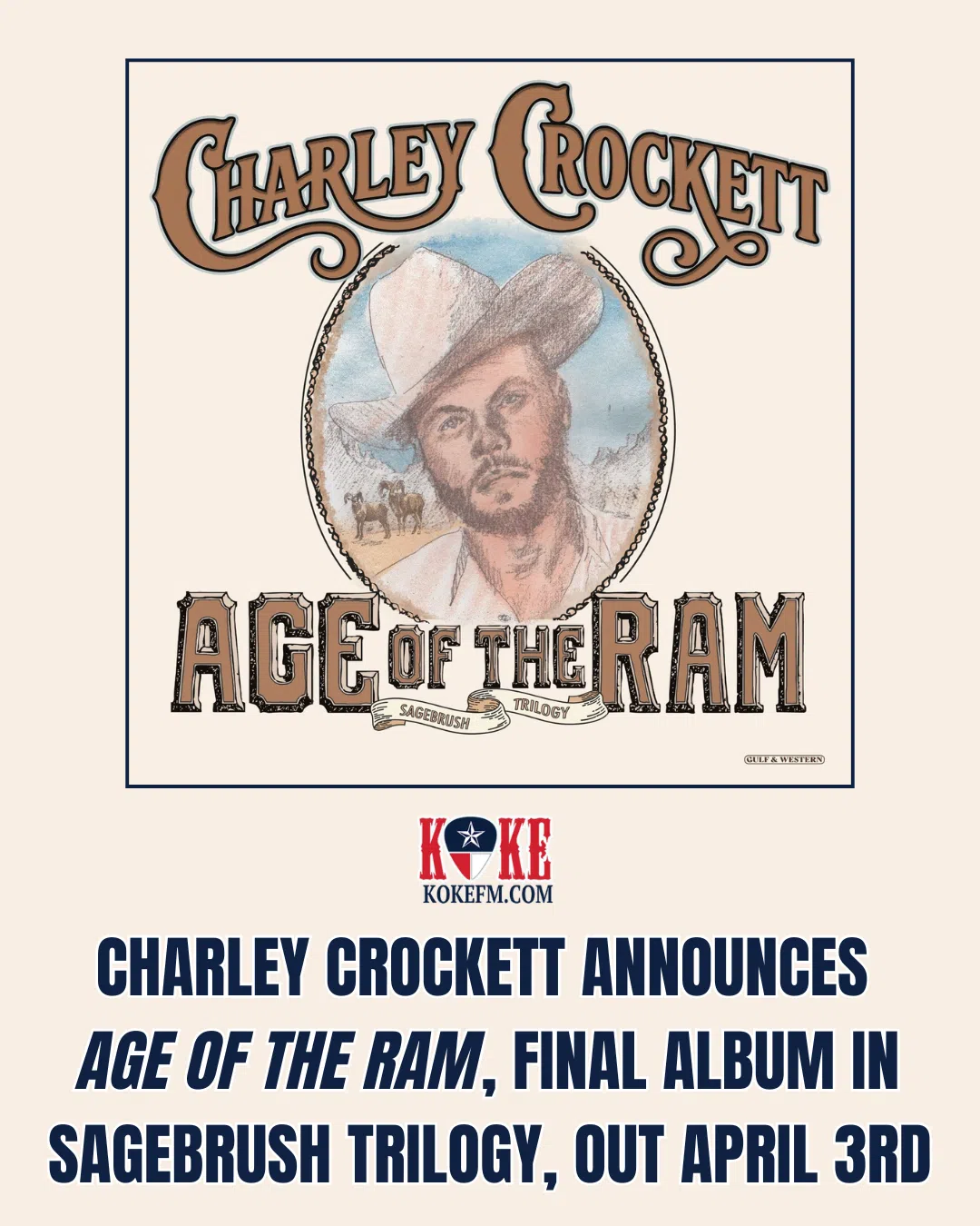 Charley Crockett has officially announced his latest album, Age Of The Ram, set to be released on April 3, 2026. The new record will serve as the final installment in his Sagebrush Trilogy, a series o...
