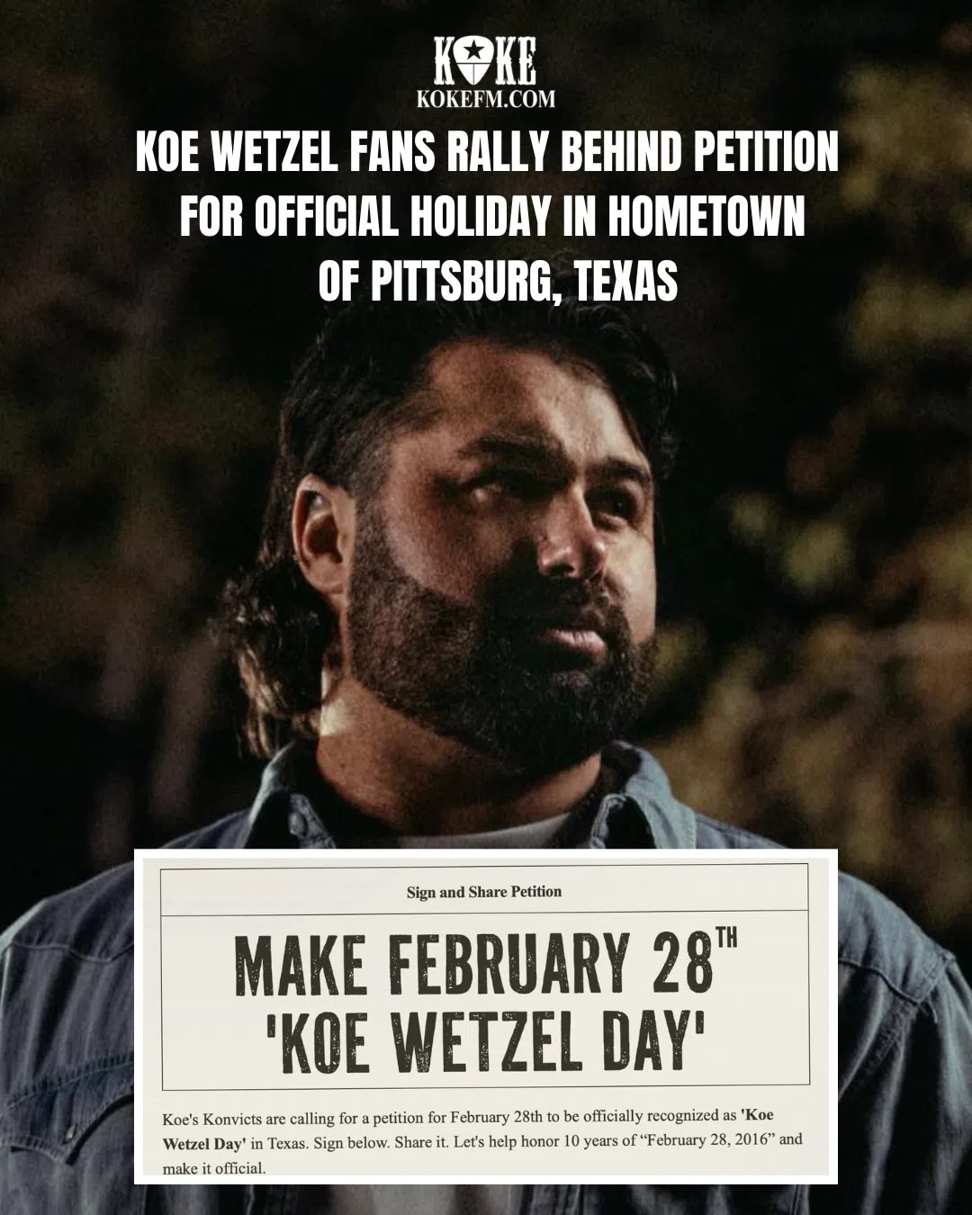 If you thought "February 28" was just another date on the calendar, think again. Koe Wetzel is officially rallying fans and locals alike to make February 28 an official holiday in his hometown of Pitt...