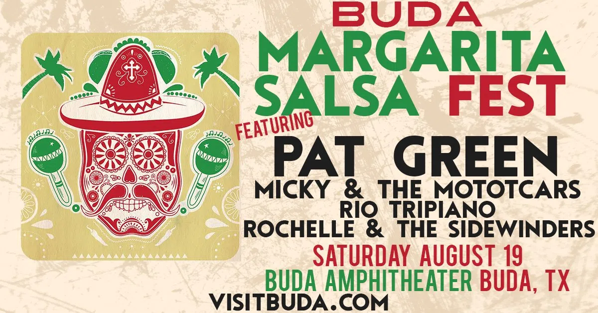 IT IS GOING DOWN IN BUDA TEXAS AT THE MARGARITA SALSA FEST ON SATURDAY AUGUST 19TH! HEAD OUT TO BUDA AMPHITHEATER TO CATCH LIVE MUSIC FROM MICKY AND THE MOTORCARS, RIO TRIPIANO, ROCHELLE AND THE SIDEWINDERS AND TEXAS MUSIC LEGEND... PAT GREEN!
