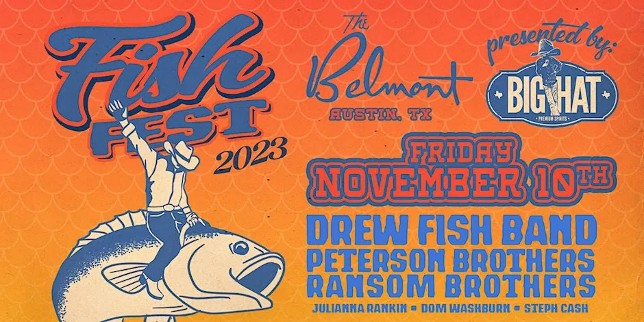 Get your tickets for the first annual Fish Fest today! See full band performances from the Drew Fish Band, The Peterson Brothers, and The Ransom Brothers, along with acoustic performances from Julianna Rankin, Steph Cash, and Dom Washburn. Fish Fest 2023 will take place on Friday, November 10, 2023 at 305 West 6th Street, Austin, TX 78701. The event kicks off at 6:00 PM. Mark your calendars and get ready Fish Fest 2023!