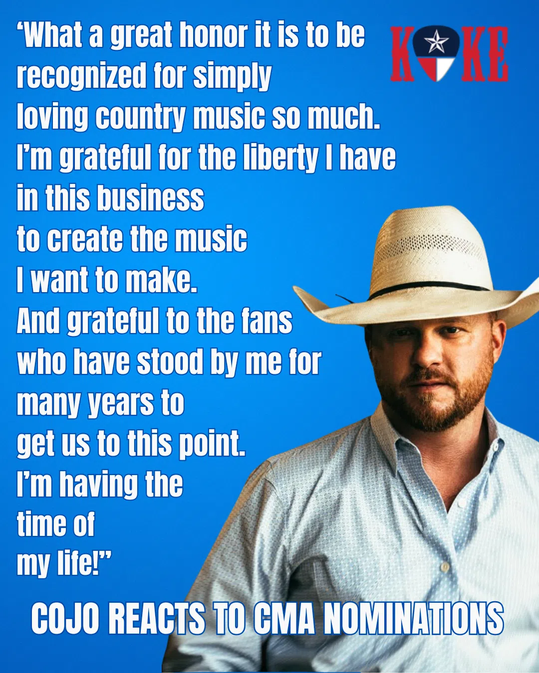 Y'all... it's a CoJo kind of day! Cody Johnson scored FOUR nominations at the 2025 CMA Awards and for the first time ever, he's up for the big one: Entertainer of the Year. Yep, our Texas cowboy is of...