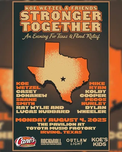 KOE WETZEL AND FRIENDS STRONGER TOGETHER BENEFITING THE KERR COUNTY FLOOD RELIEF FUND THE PAVILION AT TOYOTA MUSIC FACTORY - IRVING, TX - AUGUST 4, 2025 One hundred percent of net proceeds from ticket...